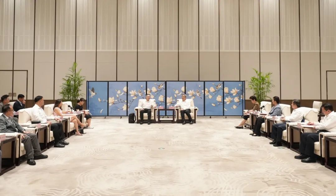 8月12日,市委书记吴新明会见了台玻长江玻璃有限公司董事长林嘉宏率领的台湾工业总会青年委员会考察团一行。