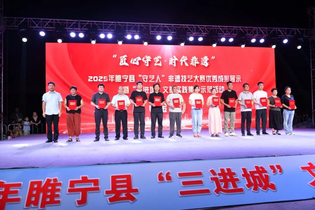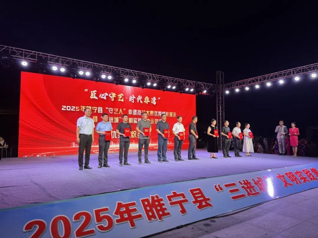 从“三下乡”到“三进城”,睢宁的文化交流迎来新篇章!8月14日傍晚,天还未黑,云河广场就已经人声鼎沸、鼓乐齐鸣,“匠心守艺・时代非遗”2025年睢宁县“守艺人”非遗技艺大赛优秀成果展示暨“三进城”文明实践集中示范活动盛大启幕。