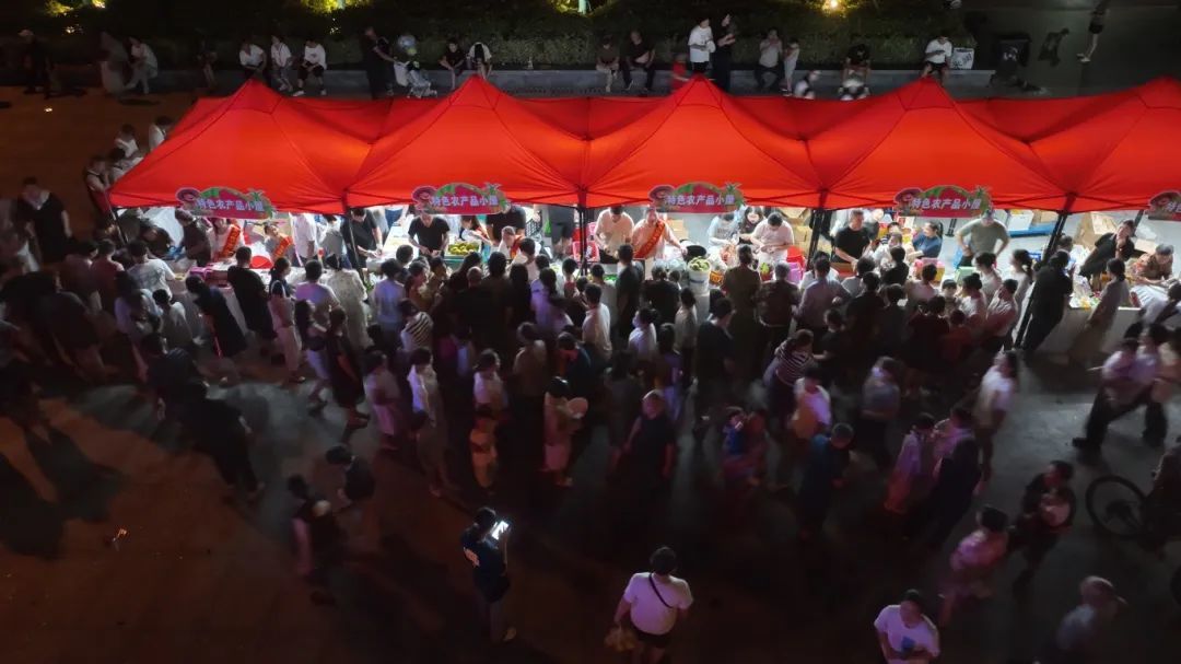 琳琅满目的农产品让人大开眼界,摊位前挤满了挑选、购买的群众。
