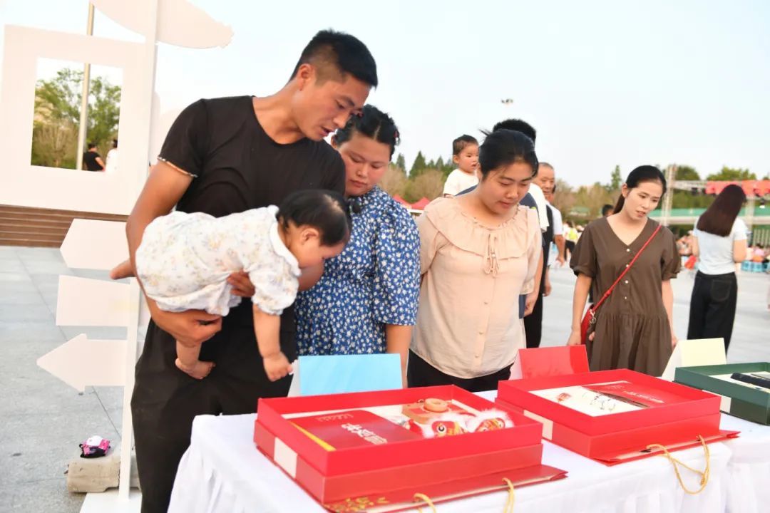 小屋展台上,“金榜题名”“光荣入伍”“宁娃成长”等纪念礼盒整齐摆放,直观展示了近年来睢宁县践行文明新风尚的创新举措。