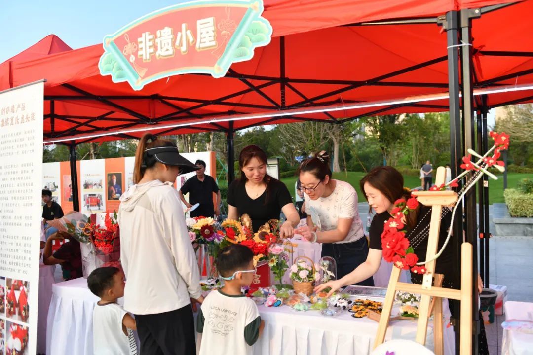广场另一侧的非遗小屋,同样人气爆棚。