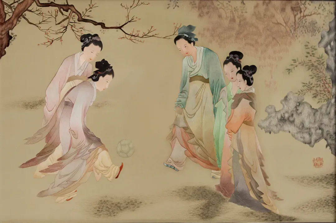 创作的苏绣版《仕女蹴鞠图》