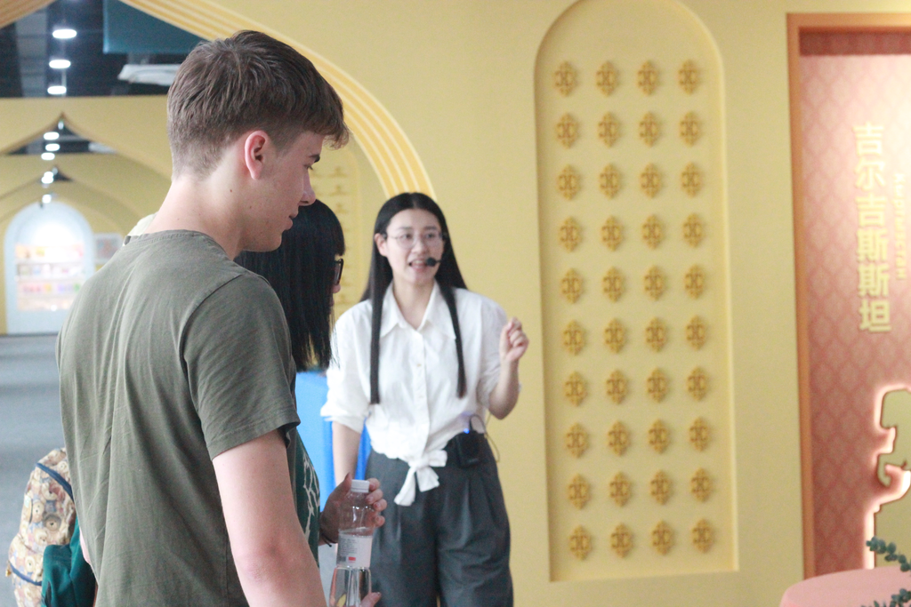 而在南京市的文化探索之旅中,青年们进一步体验了汉字与科技交融的魅力。他们首先到访中国—中亚贸易畅通合作平台,从复刻的古代丝路契约与货单上的墨迹中,追溯南京作为丝绸之路重要节点的辉煌历史;随后步入世界文学客厅,在“汉字构筑的文学之都”叙事中,聆听曹雪芹、吴敬梓等文学巨匠与南京的故事。借助VR技术,一条2.1公里长的文学地标线路生动再现刘勰创作《文心雕龙》的历史场景,让抽象经典变得可触可感。