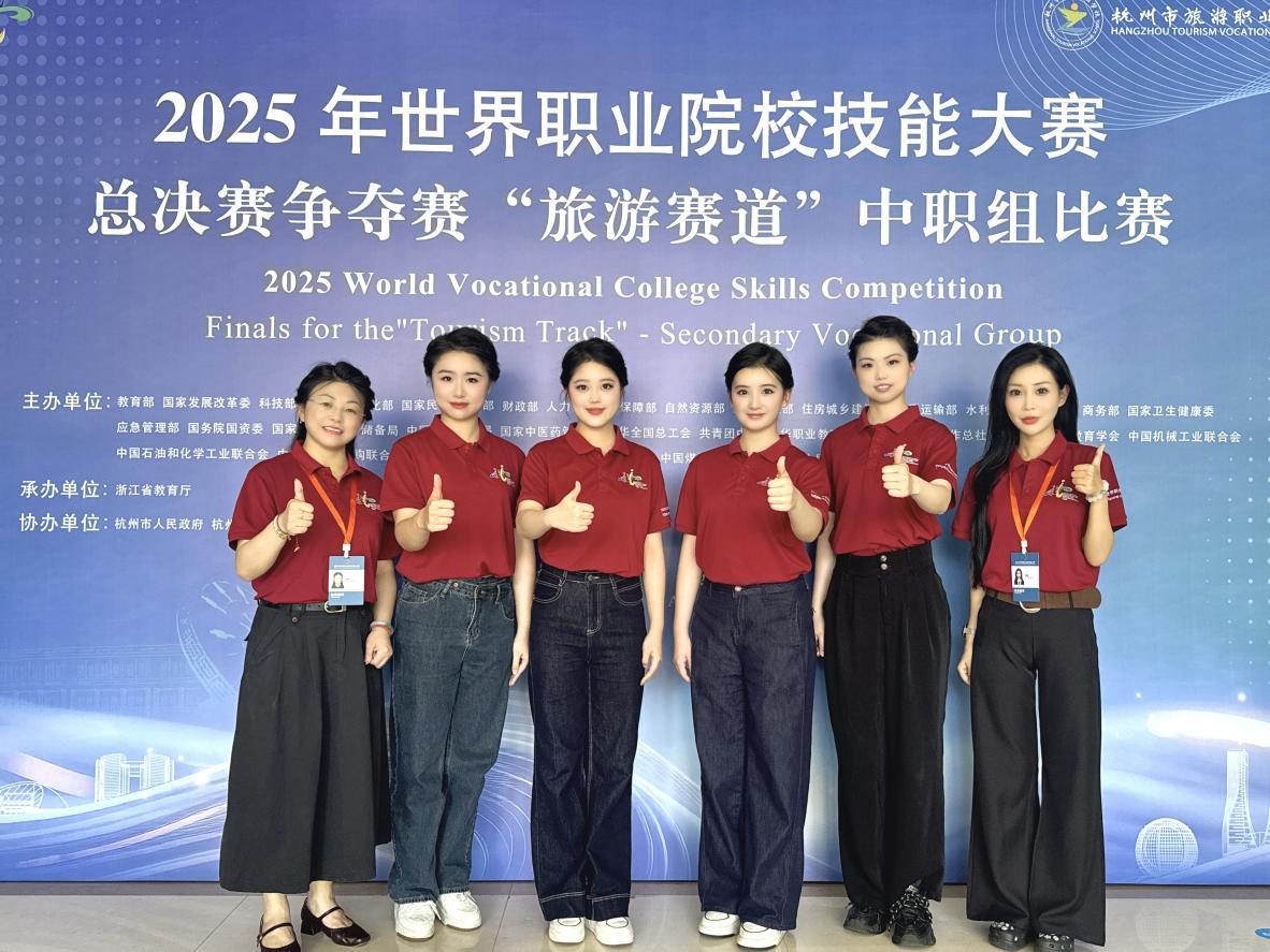 2025年世界职业院校技能大赛以“技炫青春 能创未来”为主题,共设置42个赛道,大赛总决赛分争夺赛、排位赛、冠军总决赛三个阶段进行,为职业院校学生提供了展示技能、交流经验的高水平平台。在比赛过程中,南京浦口中等专业学校旅游赛道技能团队的成员们展现出扎实的专业功底、精湛的技能水平和出色的临场应变能力。他们凭借规范的操作、流利的双语表达和卓越的综合职业素养,充分展现了南京职教学子的实力与风采,赢得了评委们的高度认可。