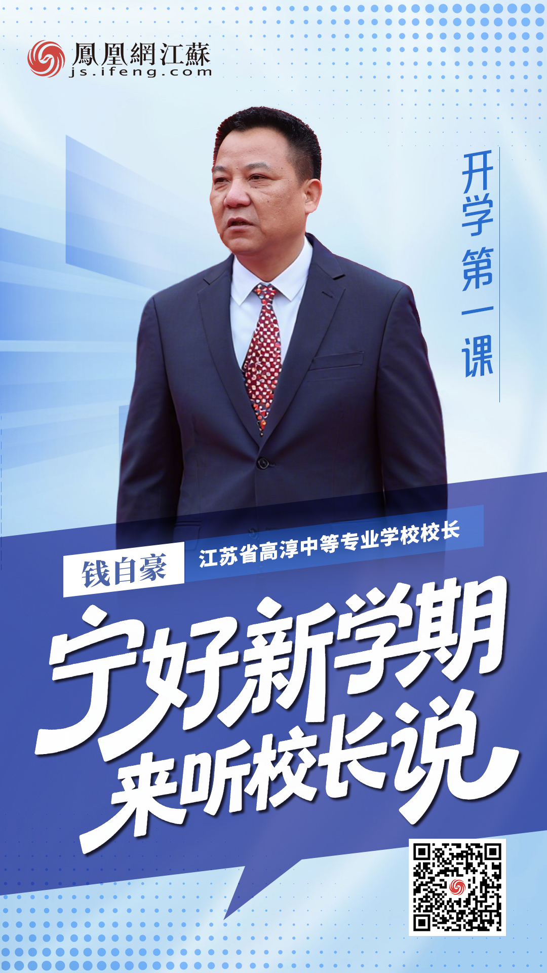 在这个承载着希望与梦想的崭新起点,凤凰网江苏特别推出《宁好新学期》特别策划,特邀南京市多所知名学校校长,为同学们带来意义非凡的开学第一课。愿同学们在新学期的征程中,以昂扬的姿态迎接挑战,以执着的信念追逐梦想,用奋斗书写无悔青春,共同创造更加灿烂的明天。