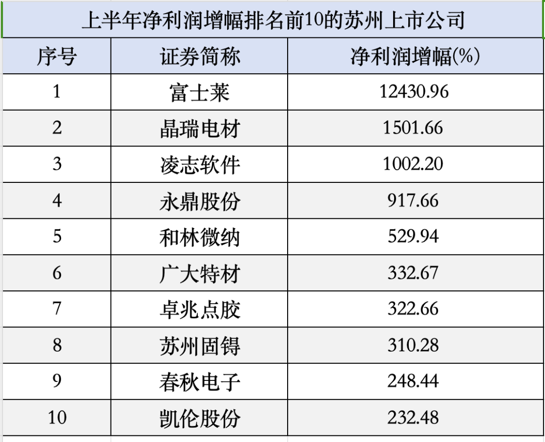 从净利润增幅来看,上半年,“苏州板块”共有32家公司净利润实现翻倍,超过一半的公司净利润实现增长。除扭亏企业外,业绩最为亮眼的是凌志软件,该公司今年上半年实现净利润1.12亿元,同比增长1002.2%。