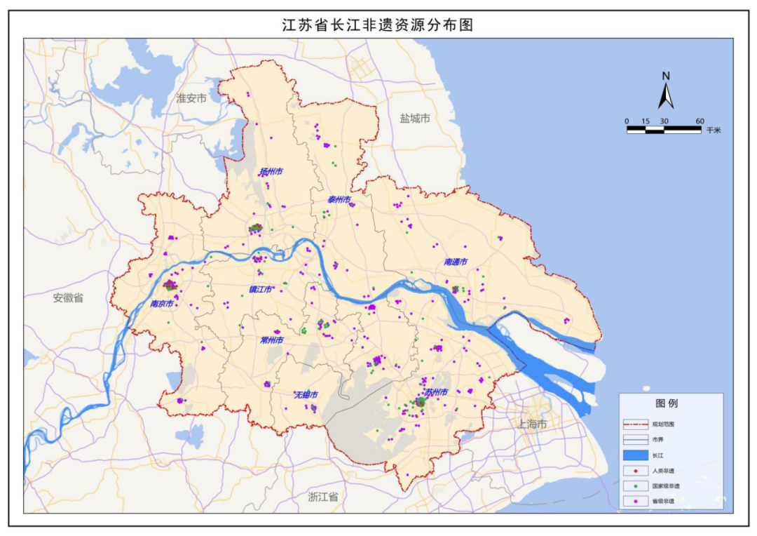 《规划》梳理汇总了江苏省沿江8市国家级非遗代表性项目,省级文化生态保护实验区、非遗生产性保护示范基地、非遗传承示范基地、非遗研究基地、非遗创意空间、非遗旅游体验基地、无限定空间非遗进景区示范项目、非遗工坊等非遗资源名录。
