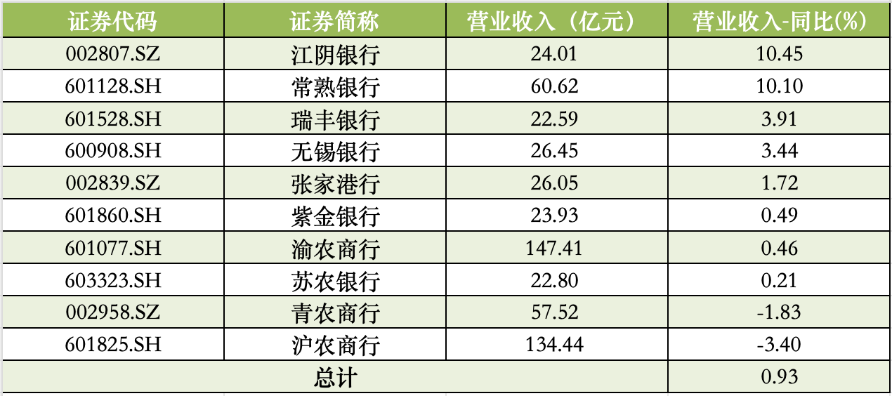 营收增速仍处较低水平,江阴银行、常熟银行领跑