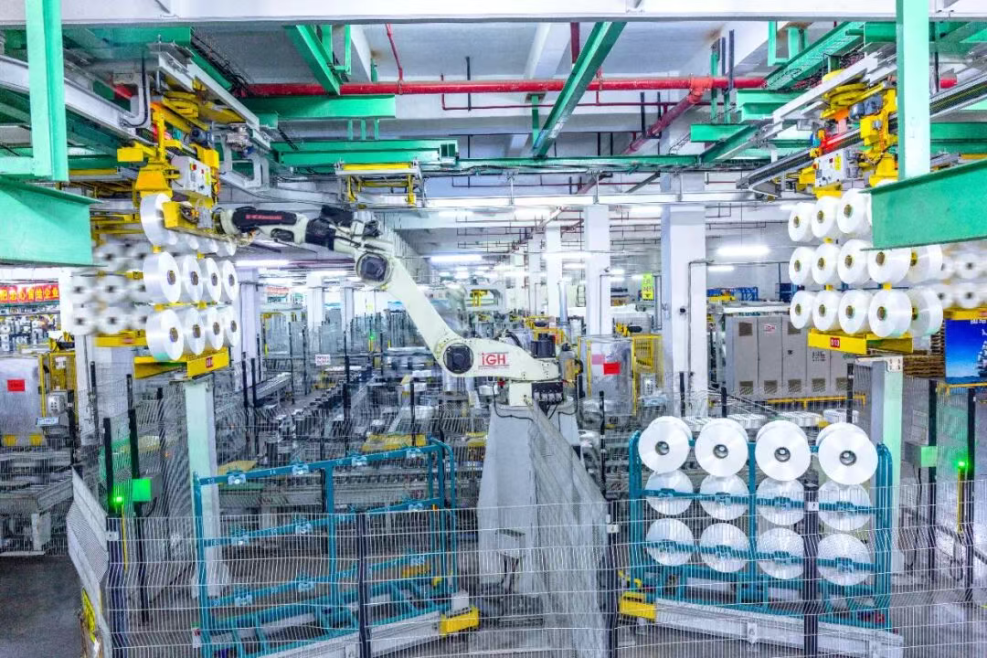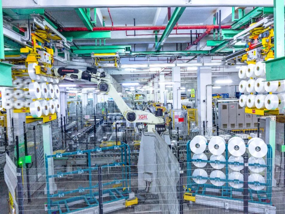 经过多年生产智能化改造,桐昆工厂的自动化程度已高达95%,行业首台套挂丝机器人、5G智能巡检机器人等多项智能化应用显著提升了生产效率。