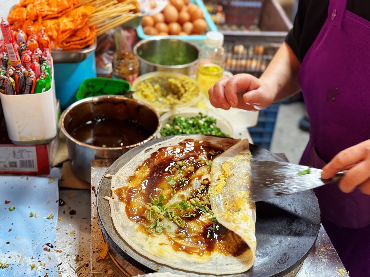 自7月1日试营业以来,富强市集每天五点就开始飘起豆浆油条的香气,豆腐脑撒上虾皮、榨菜,一口下去滋味直冲天灵盖儿。与其他市集不同,富强市集几乎所有早点摊位都是原农贸市场的商户回迁,“以前的老顾客跟着来,新游客也爱尝这份‘老苏州的早餐’。”一位摊主笑着说。
