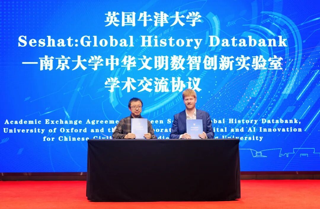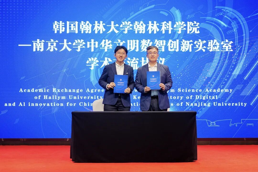 仪式现场,南京大学与英国牛津大学、韩国翰林大学等多项国内外合作项目同步签约、发布,涵盖文明研究、数字素养教育、数字遗产交互等多个领域的联合项目。项目将由南京大学中华文明数智创新实验室牵头完成。据介绍,南京大学中华文明数智创新实验室围绕文明研究“主轴”,重点开展文明远读、文明探源、文明传承、文明熔铸、文明互鉴研究。其中,文明传承项目重点聚焦中华古城保护数字图谱集成、边疆地域中华古城图谱、伊儒会通的中华清真寺图谱等重大工程,为近3000个中华古城进行数字复原和保护区划定等工作,为全球人类历史聚落遗产的传承保护创新方法、探索标准,以数智创新践行全球文明倡议;文明远读项目聚焦对中华文明和人类文明的精神谱系进行系统挖掘、结构分析、测量比较的“文化远读”,从中华及海外原典中提取并挖掘文明的标志性符号与思想流变时空轨迹,构建跨文明的宏观文化测量指标体系与知识图谱。