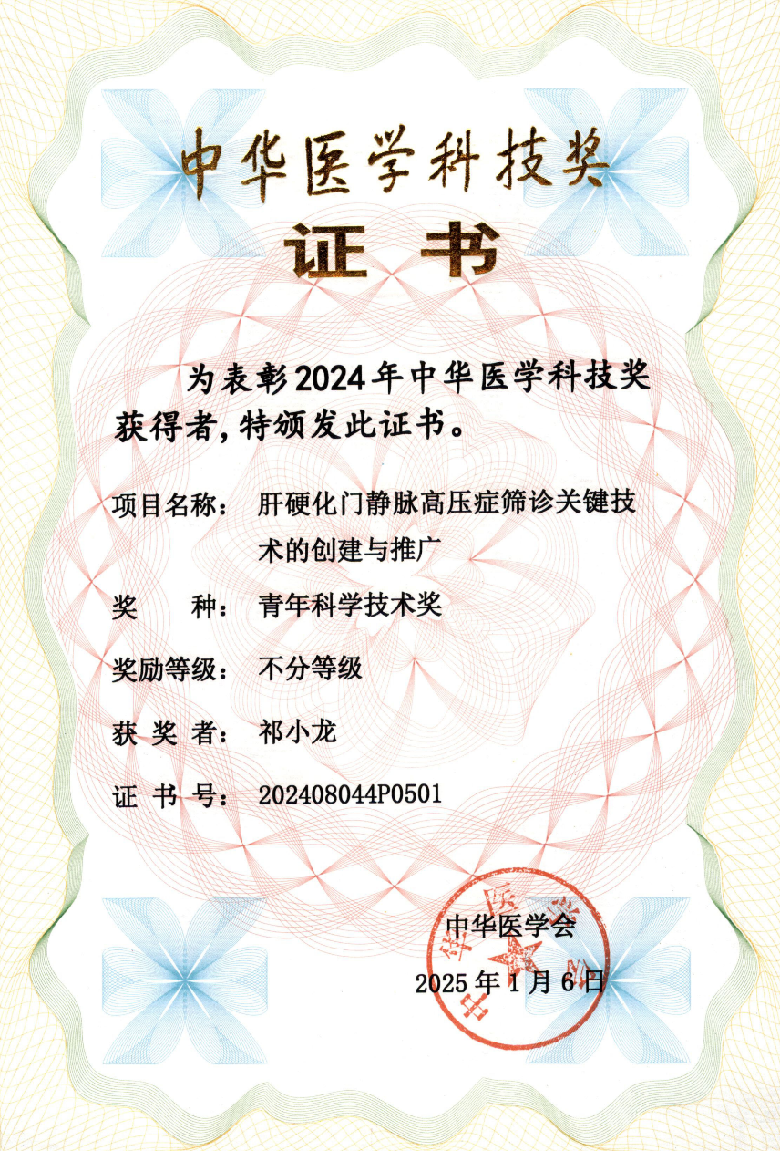 9月19日,庆祝中华医学会成立110周年大会在京召开。大会集中展示了2024年中华医学科技奖获奖人员及获奖项目。CHESS创始人、国家高层次青年人才、东南大学附属中大医院院长助理祁小龙教授牵头的项目《肝硬化门静脉高压症筛诊关键技术的创建与推广》荣获2024年中华医学科技奖·青年科学技术奖。