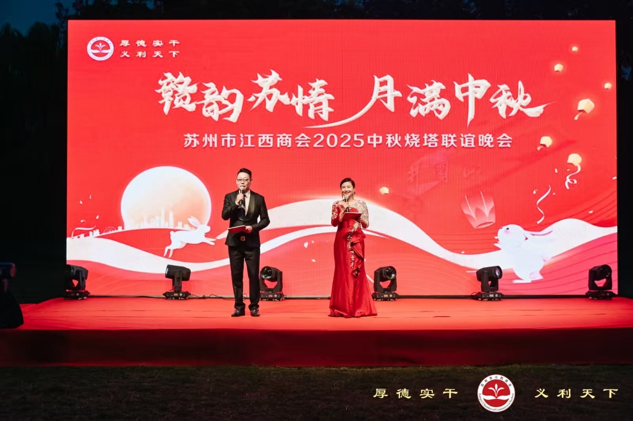 9月20日晚,苏州市江西商会在相城区冯梦龙村隆重举办“赣韵苏情,月满中秋”2025中秋烧塔联谊晚会。商会顾问、乡贤代表、苏州各兄弟商会负责人及会员等330余人欢聚一堂,共赏明月、共叙乡情、共品民俗,感受赣鄱文化与吴地文化交融的独特魅力。