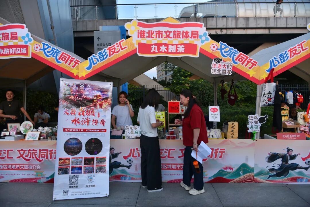 在淮北市文旅局展位前,花茶的馥郁与棒棒茶的醇厚交织成独特香气,吸引着爱茶人士细细品鉴;