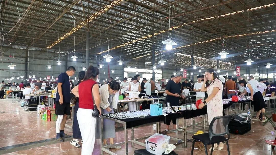 市场内成品交易活跃,场外原石交易同样兴旺。从事玉石行业20余年的河南镇平经销商王文波,得知邳州玉石交易市场开市后,第一时间在此购置门面入驻。