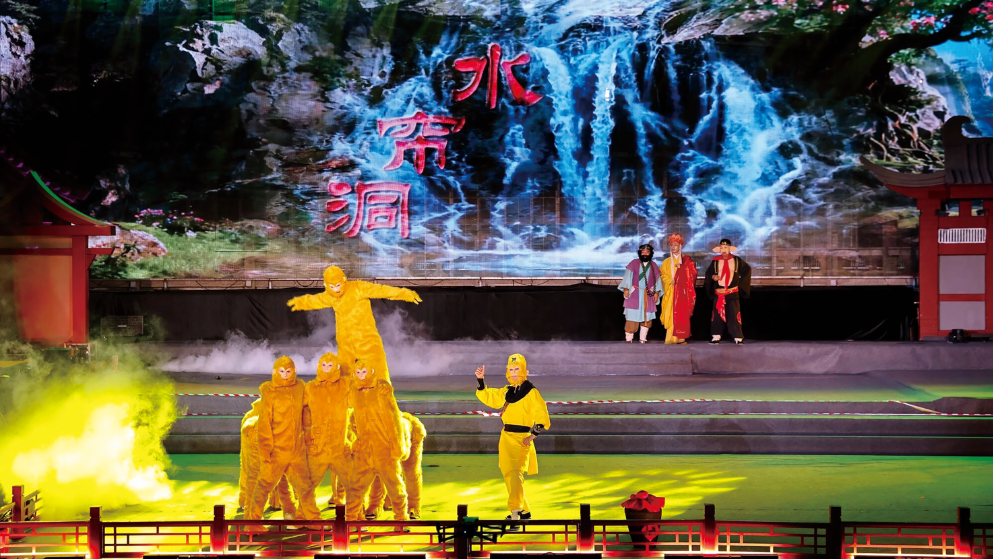 “我们希望通过《遇见西游》,让游客不再是‘看西游’,而是‘走进西游’,所以在游览沿途安排了孙悟空、猪八戒等互动角色,设置‘共享蟠桃’等趣味互动环节,让更多人了解连云港的文化底蕴。”演出负责人刘晓琼表示。