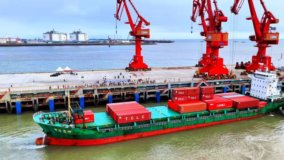 一声汽笛长鸣,如东洋口港“洋太”集装箱航线正式开通。