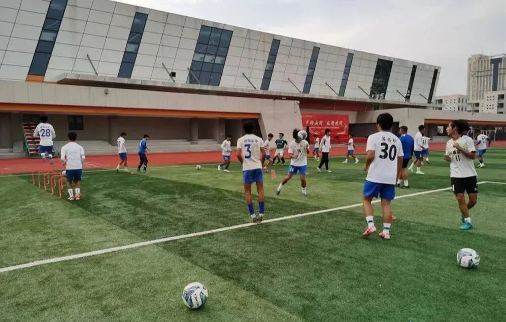 9月30日上午,阳光正好,记者来到江苏省宿豫中学操场,看到20余名身着橙色或蓝色训练服的球员,正分组展开对抗训练,传球、跑位、防守、射门等动作行云流水。这些球员正是宿豫队的试训队员。