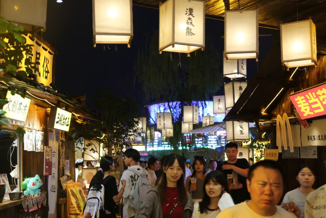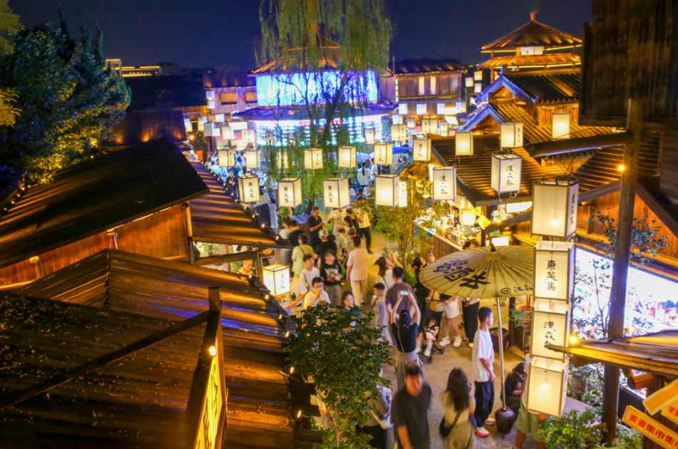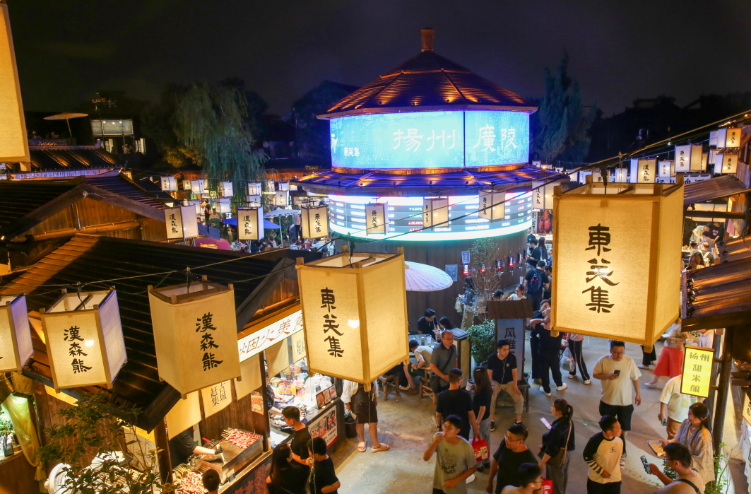 国庆期间,“月下东关・汉森熊市集” 率先拉开热闹序幕,复古 “东关集” 灯牌在街巷间随处可见。“月下东关·扬州啤酒交易所”主题活动点燃了东关街的夜晚。啤酒特调、创意小吃摊位前排起长队,驻唱歌手的民谣歌声回荡街头,年轻人三五成群围坐小桌,在市井烟火中感受扬州夜晚的活力。现场融合扬剧、扬州评话等地方戏曲与曲艺表演,让游客们大饱口福的同时,还能感受扬州古城独特的文化气息。