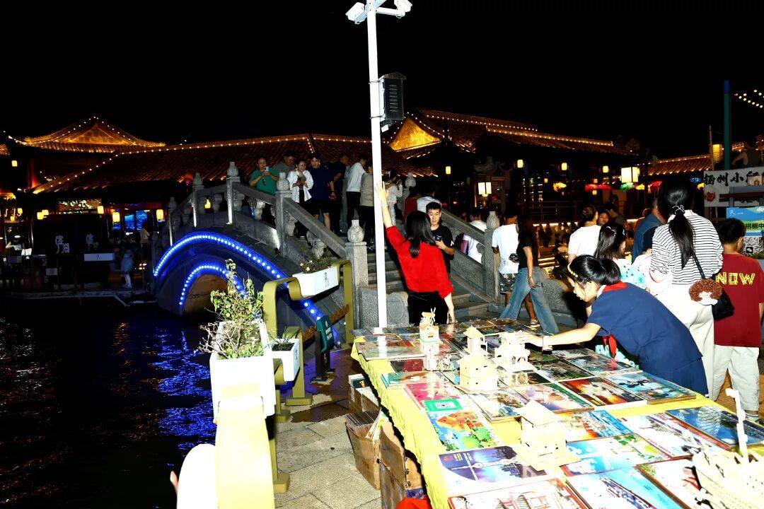 国庆期间,古运河畔的大水湾街区运河集市热闹开市,焕发全新活力,集市上,各类文创、轻食饮品、创意商品琳琅满目,吸引人们驻足挑选,露天乐队激情演奏,动感旋律瞬间点燃节日气氛。