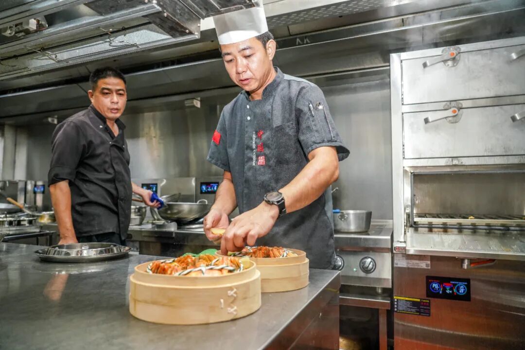 为了迎接国庆旅游高峰期,我们专门准备了金秋蟹宴,光是这一味大闸蟹,我们就有花雕醉蟹、蟹粉鎏金烩、蟹腿银芽煲等十几种加工做法。在这里,不止有鲜美的大闸蟹,还有本地主厨出品的地道昆山菜。