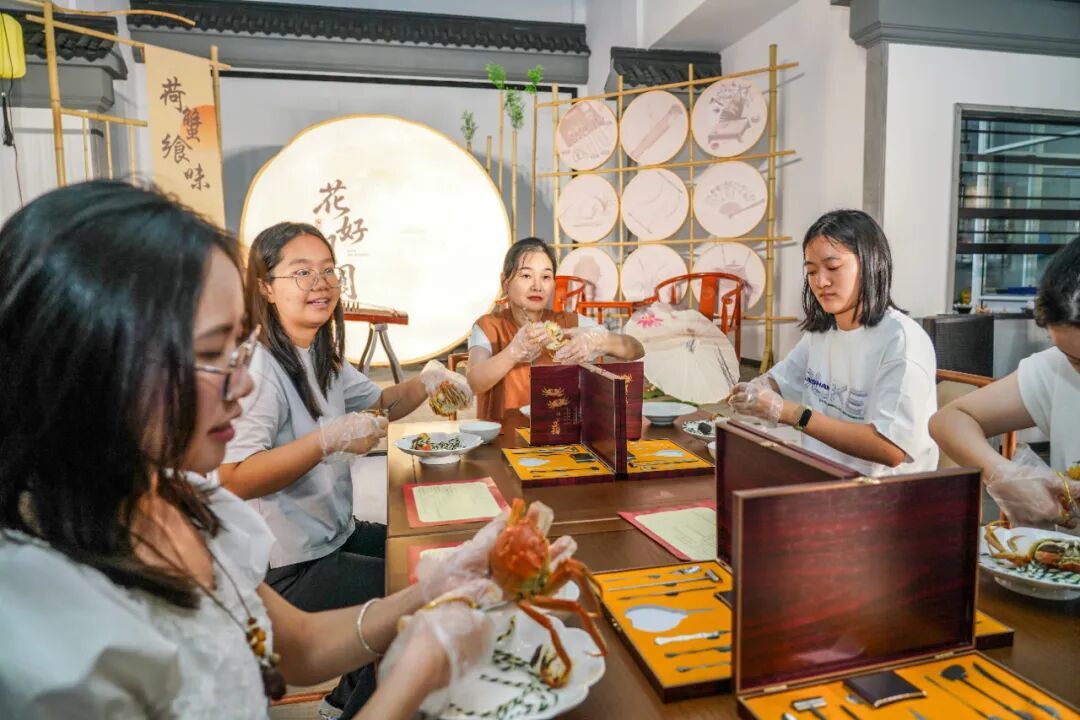 在位于正仪老街的莲润楼中,游客们在享用美味大闸蟹的同时,还可以插花、听曲、品茶、对弈,在“小桥流水人家”的静谧与诗意中享受一段完整的金秋假日时光。