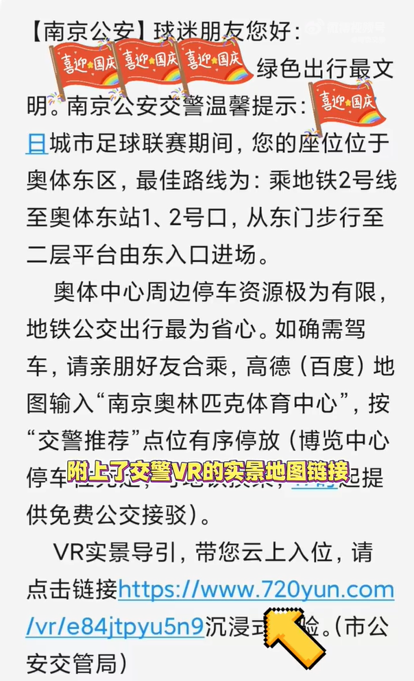 赛前购票的球迷能够收到带有VR链接的观赛短信,可更加方便寻找到合适的地铁站以及进出赛场的通道等。
