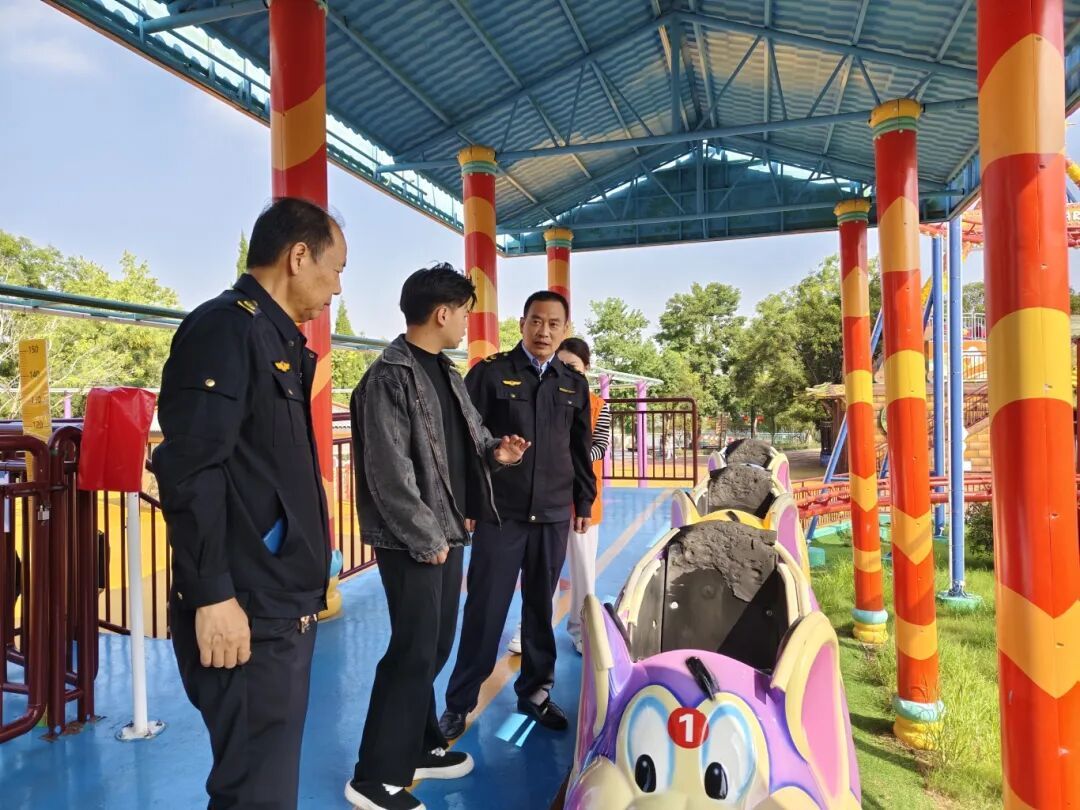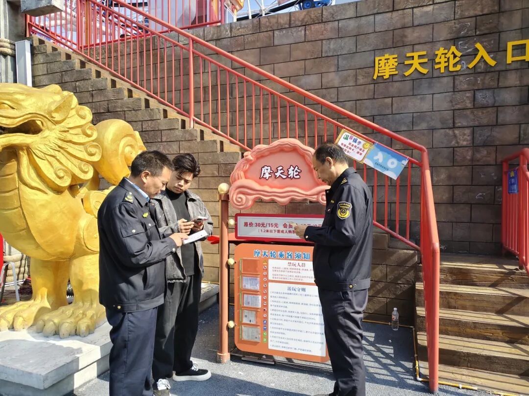 在沛县汉城公园,执法人员认真核查设备定期检验、维护保养记录及作业人员持证上岗情况,及时消除安全隐患,确保设备安全稳定运行。