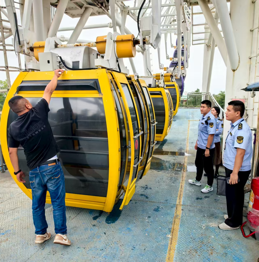 在潘安湖景区,执法人员重点检查园区游乐设施设备注册登记、定期检验、日常维保、作业人员持证上岗等情况。聚焦电梯、游乐设施等特种设备使用单位,开展专项检查和投诉处置,保障群众出行游玩与消费安全。