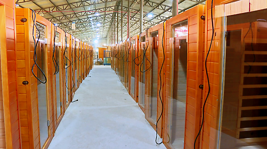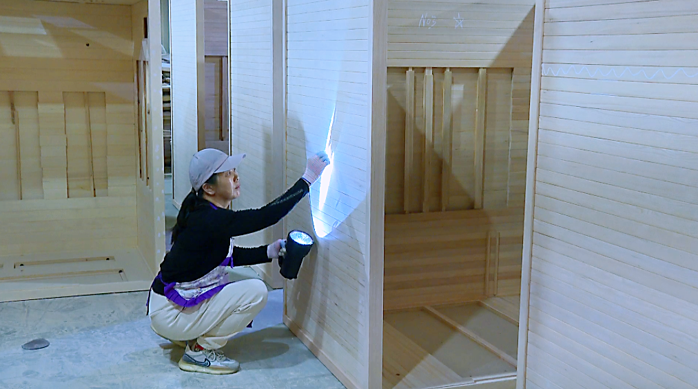 在徐州康之源桑拿有限公司的生产车间,断料、开板、刨光、组装、打包等工序环环相扣,工人正加紧完成一批发往美国的订单。