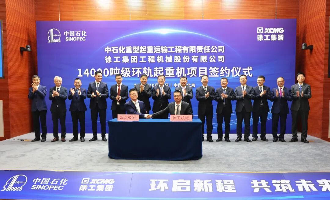 10月10日,徐工集团与中石化起运公司成功签约全球首台14000吨环轨式起重机。