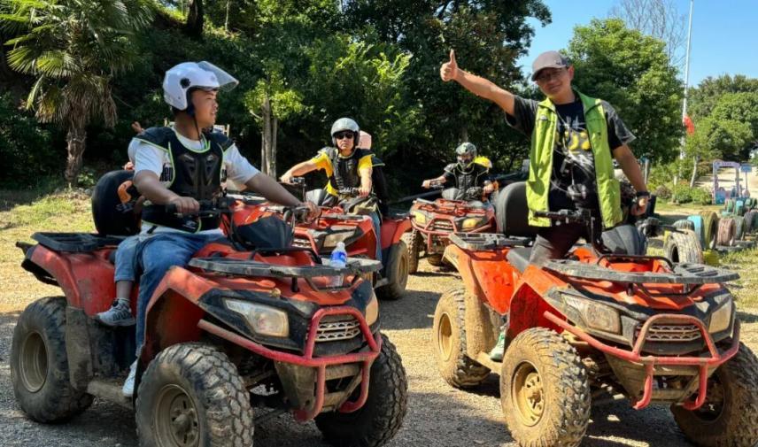 在米家洼户外营地,乡村体验类活动则为亲子家庭打造了欢乐天地,解锁假日新玩法。米家洼户外营地推出的亲子乐游汇热闹非凡,游客们驾驶四轮摩托车,在山路上纵情驰骋,体验风驰电掣的奇趣旅程。营地内香气四溢的农家美食、夜幕降临时燃起的温暖篝火,也为亲子家庭带来了一段充满欢声笑语的沉浸式体验。营地还安排了歌舞等文艺演出,为游客献上一台文化盛宴。