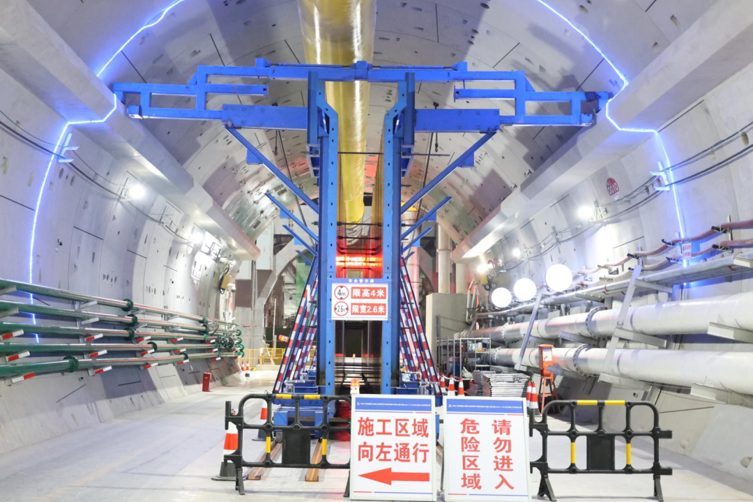 截至目前,过江隧道内盾构管片已拼装至1185环,盾构掘进里程达到2370米,已完成全程的77%。隧道内中隔墙等附属设施同步施工中,项目朝着既定时序目标稳步推进。