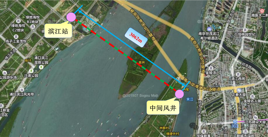 隧道工程始于建邺区江心洲中间风井,下穿江心洲长江大堤、潜洲和长江主航道后,在滨江站接收,隧道全长3062.6米。盾构掘进过程中,掘进最低点位于长江水面下68.58米,为目前长三角区域过江地铁隧道建设的最深深度。