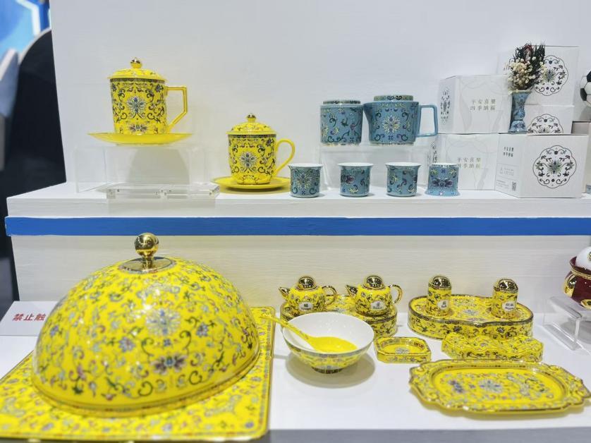 “好玩!好看!”漫步展区,记者不时听见有观众发出赞叹。作为南京版权“走出去”的老字号企业,江苏高淳陶瓷股份有限公司这次不仅带来了畅销海外100多个国家的“文化中国瓷”,还对享誉世界的国宴瓷系列产品进行了集中展示。其中,2014北京APEC峰会招待晚宴用《盛世如意·国韵黄》、2017“一带一路”峰会雁栖湖领导人午宴用《丝路国宴》最引人瞩目。江苏高淳陶瓷的负责人告诉记者,“为庆贺中国瑞典建交75周年,11月7日至15日这两套瓷器还将作为呈现江苏独特文化魅力与多元旅游资源的核心展品,赴瑞典斯德哥尔摩亮相中国文化中心举办的‘茶和天下·苏韵雅集’文旅推介会暨‘运河流光·守艺新生’非遗精品主题展。”