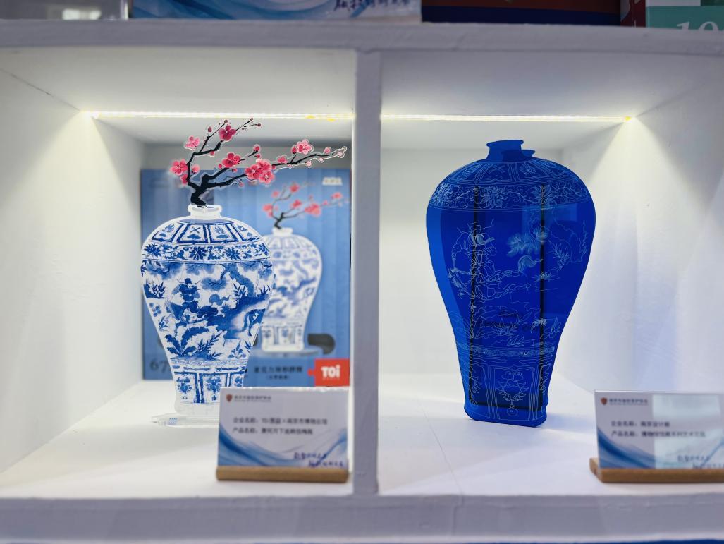 作为江苏展区的“颜值担当”,南京展区的展品可谓琳琅满目。记者在现场看到展出作品不仅有“文学之都——宁好”“南京云锦”“十竹斋笺谱”等耳熟能详的城市文化IP衍生产品,还有“跳舞的瓦当”“明朝那些城门”“六朝雅韵”等城市文博IP好物。有趣的是,记者发现来自南京设计廊文创发展有限公司的“镇馆之宝萧何月下追韩信亚克力艺术花瓶”与南京图益的“市博物总馆·萧何月下追韩信梅瓶拼图”正撞了个满怀。它们在南京展区相遇,却以不同的产品形态展现着各美其美的创意。工作人员告诉记者,“本次参展,仅南京设计廊一家企业就带来了金属书签、摇摇乐活页本、盲盒笔等5款萧何月下追韩信梅瓶系列产品”。随着南京版权市场的愈加繁荣,越来越多的产品品牌与博物馆展开合作,助力城市文化传播。