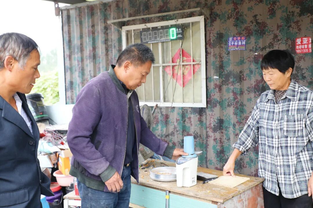 魏集镇苗庄村的苗金书拉着玉米来到该镇段付华家庭农场的烘干厂区,既烘干也销售。段付华熟练地取样,测量玉米的水分,之后算起了精细账。