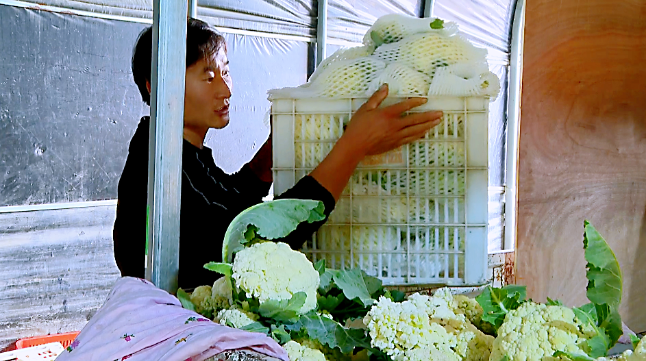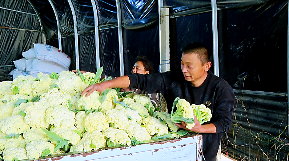 “今天地头收购价是一块钱一斤,我们两个人摘了2000斤,一天就能收入2000块。”种植户韩伟一边麻利地装车,一边盘算着今年的收成。他承包的20亩地中,有10余亩专门种植花菜。在采收旺季,他和家人凌晨三点就下地忙碌。
