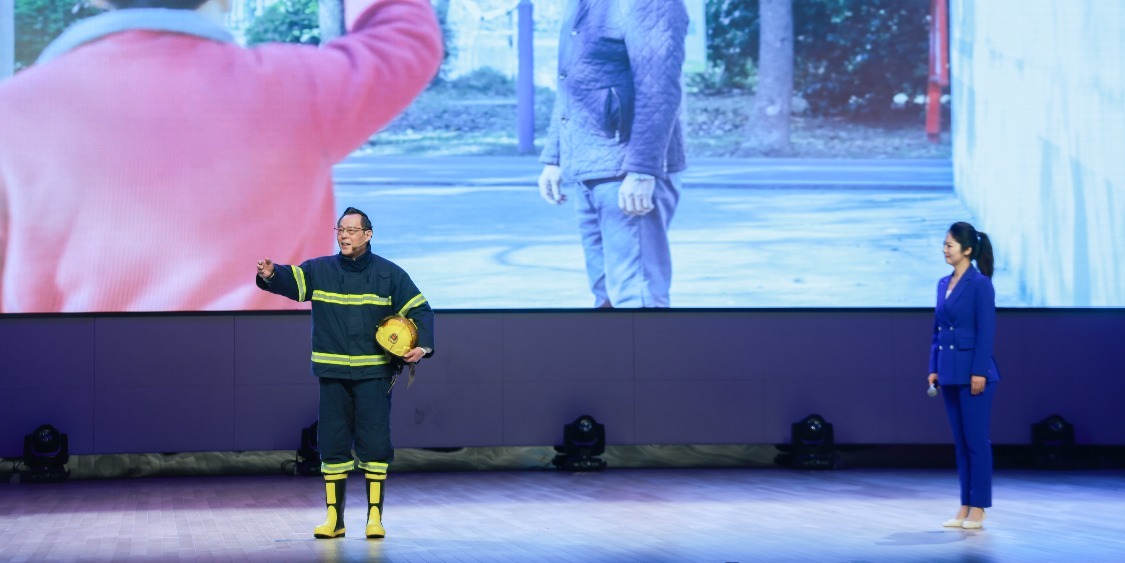 当舞台灯光聚焦于情景讲述《从火光中走来》,观众们仿佛被带到了惊心动魄的救火现场。讲述者声情并茂,再现了缪梅清带领“缪家军”义务扑救三千余场火情的英勇无畏。那坚定的眼神、那义无反顾的背影,让“平民英雄”的形象变得无比清晰和高大。