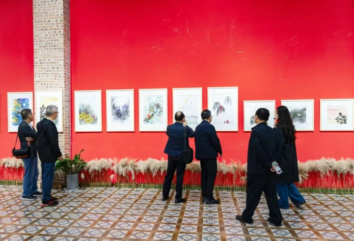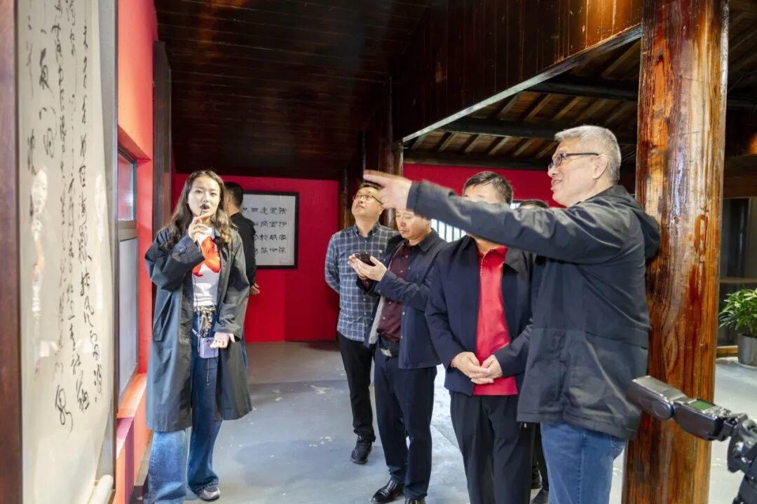 在东锦龙堂,代表团先后参观了三大各具特色的展览:"龙涛新国画美展"以传统笔墨诠释当代审美,展现了新国画的艺术魅力;"【一条】×潮间带艺术村——国际艺术家驻地创作作品展"呈现了多元文化的艺术对话;"全国第七届楹联书法作品展"则彰显了传统书法的时代风采。代表团成员驻足品鉴,深入交流艺术创作的心得体会。