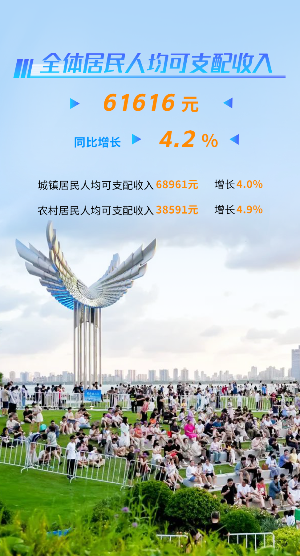 前三季度,全市全体居民人均可支配收入61616元,同比增长4.2%,其中城镇居民人均可支配收入68961元,增长4.0%;农村居民人均可支配收入38591元,增长4.9%。全市城乡公共服务支出占一般公共预算支出的比重达80.4%。前三季度城镇新增就业31.47万人。从2025年7月1日起最低生活保障标准由1155元/月提高到1208元/月。