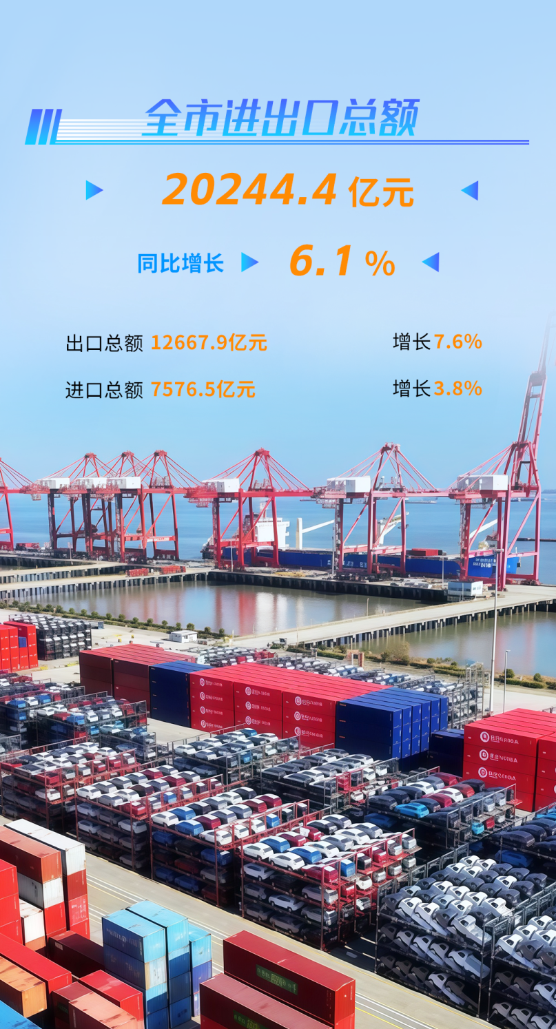 前三季度,全市进出口总额突破2万亿元,达20244.4亿元,同比增长6.1%,其中出口总额12667.9亿元,增长7.6%;进口总额7576.5亿元,增长3.8%。新兴市场保持活跃。对共建“一带一路”国家进出口9071.9亿元,同比增长15.7%,占全市进出口总额的比重达44.8%,同比提高3.7个百分点。其中对东盟进出口增长26.2%。装备制造业出口稳定增长。装备制造业出口增长7.6%,其中电气机械和器材制造业、通用设备制造业、专用设备制造业分别增长14.3%、10.2%和16.2%。实际使用外资55.96亿美元,同比增长12.6%。