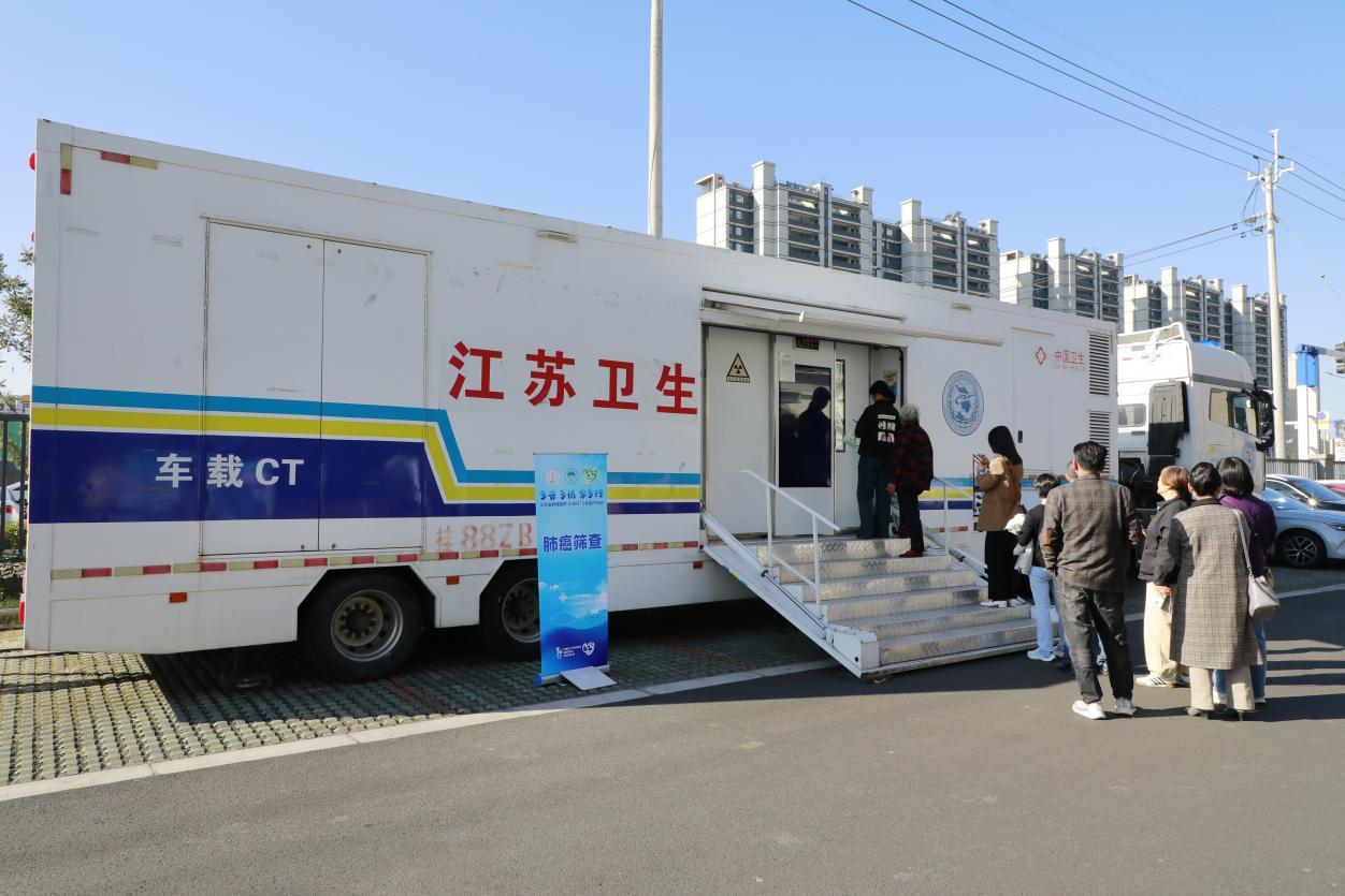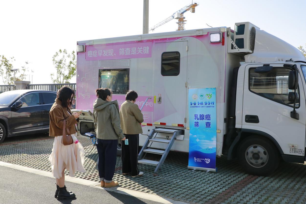 义诊现场,三辆移动筛查车前排起了长队,成为备受关注的“医疗利器”。这些车辆配备先进的CT和超声设备,江苏省肿瘤医院专家在南京即可远程操控机械臂,为当地患者完成甲状腺、乳腺等部位的超声检查,实现“基层检查、上级诊断”,大幅提升基层诊疗的精准性与效率。同时,现场还开展肺癌、肝癌等常见肿瘤初步筛查,影像数据实时回传至江苏省肿瘤医院,由本部专家出具诊断意见。“以前义诊只能看片子提建议,现在能现场筛查、现场评估,发现高危人群及时干预,太实用了。”乳腺疾病中心主任医师龚建平说道。