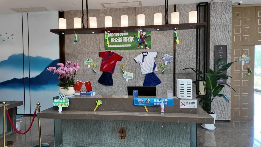 大屏前聚集的人群中,有并肩呐喊的老友、有好奇提问的孩童、有偶然驻足的游客……大家因足球而相聚,为进球而狂欢,陌生的隔阂在共同的热爱中悄然消融。商家读懂了这份滚烫的热情,贴心推迟闭店时间,精心推出“观赛套餐”“进球抽奖”等特色活动,让观赛的快乐延续到逛街消费的惬意时光;謇公湖、东恒盛等酒店布置足球主题房间,摆放赛事文创与欢迎贺卡等贴心赠品,让远道而来的球迷真切感受到“宾至如归”的温暖,每一份细致服务都藏着海门最真挚的诚意。