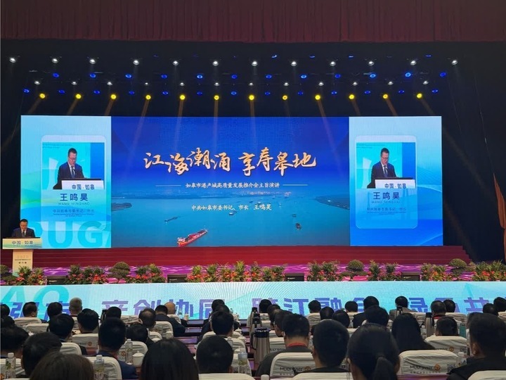 “奔涌的产业浪潮、科创的源头活水,正如长江入海般势不可挡,为‘长寿之乡’注入蓬勃朝气,为城市发展奠定深厚根基。”如皋市委书记、市长王鸣昊以“潮”为喻,分享了如皋润物无声的养生之道和江海潮涌的奋进之力。他介绍,港产城融合是在长三角一体化发展背景下,如皋激活长江黄金岸线价值、推动高质量发展、实现跨江向海突破的核心战略与关键路径。如皋致力构建“全域临港、全域向海”的发展格局,凝聚跨江向海的核心动力,为建设长三角港产城融合高质量发展标杆城市奠定坚实基础。