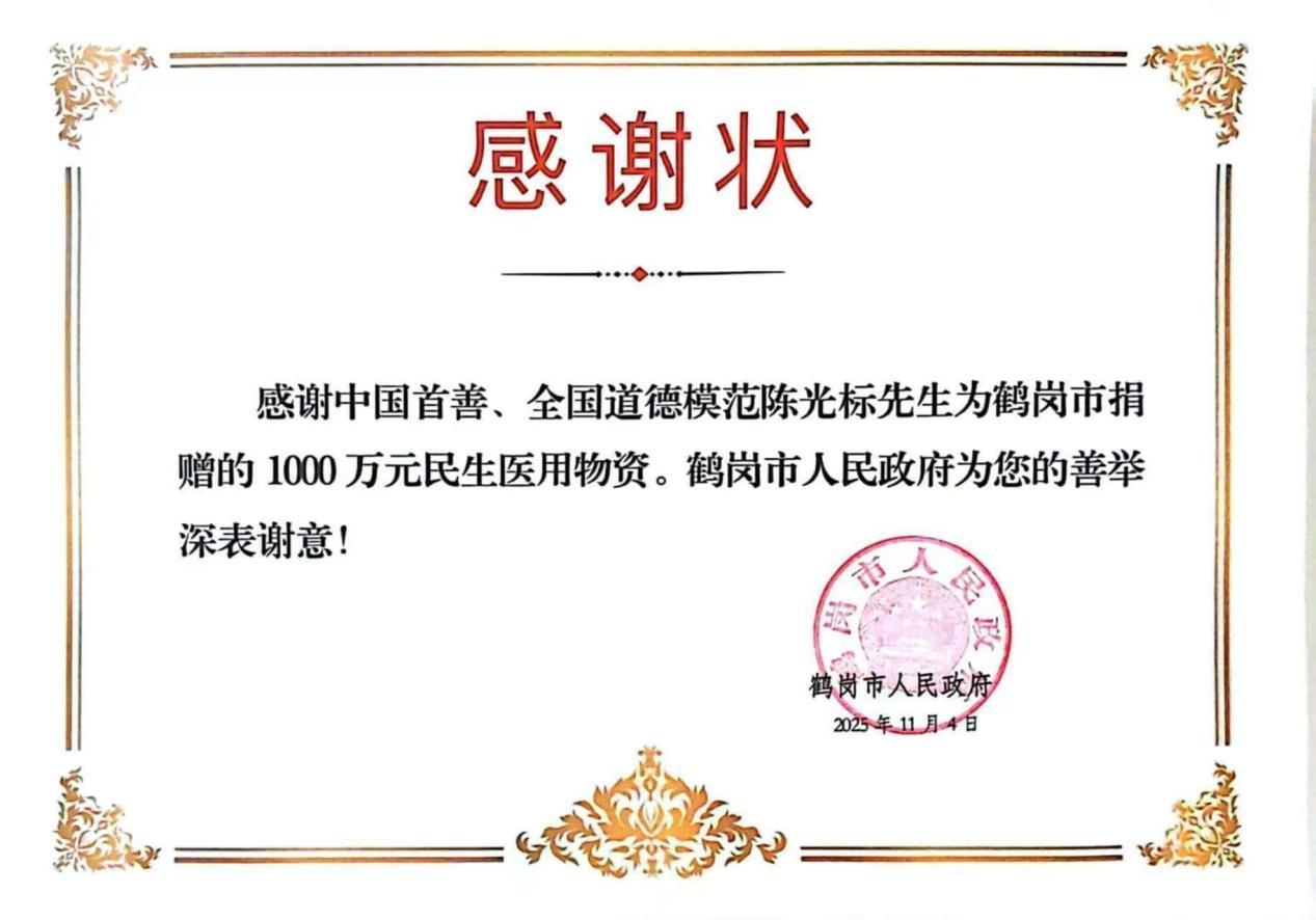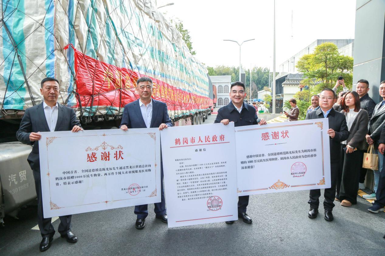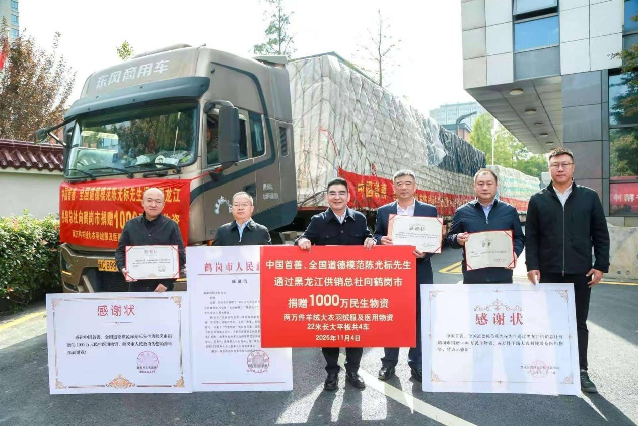 值得一提的是,这并非陈光标首次向黑龙江省伸出援手。10月30日,他已通过东方华夏文化遗产保护中心向黑龙江省捐赠2000万元民生医用物资,涵盖10万件羊绒大衣及电子血压计、红外线与超声波理疗仪、心电监护仪、24小时心电测量仪等多个品类,为当地民众送去温暖与健康的双重保障。