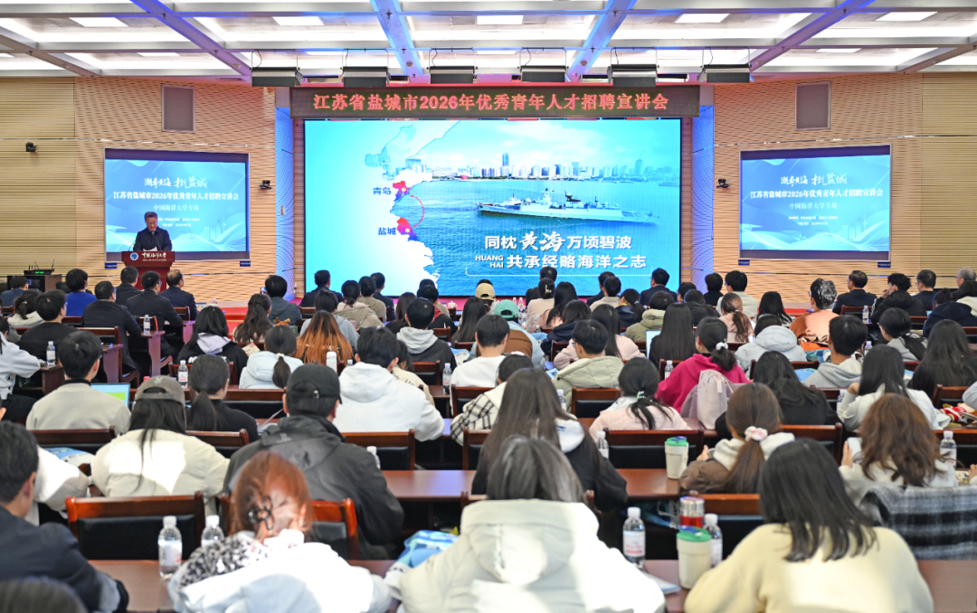 在盐城,一定会在这片热土上,找到个人抱负与城市发展同频共振的广阔舞台,书写属于中国海大人的蓝色篇章。纵观世界经济发展的历史,一个明显的轨迹,就是由内陆走向海洋,由海洋走向世界、走向强盛。当前,在海洋强国战略指引下,新一轮蓝色经济加速兴起,海洋经济发展前景广阔。今天的相聚,必将成为盐城与海大学子双向奔赴、彼此成就的新起点。在此,我们郑重承诺:——来盐城,价值有体现。盐城是一座始终让人才站C位的城市,我们把“此心安处是吾乡”作为服务人才的最高追求,创新实施青年科技人才托举行动,设立人才发展专项基金,鼓励人才提升学历层次、开展创新实践。对事业单位、民营企业引进的博士研究生,10年内给予每人每年8万元的科研补贴,为怀揣梦想的青年人才插上腾飞的翅膀。
