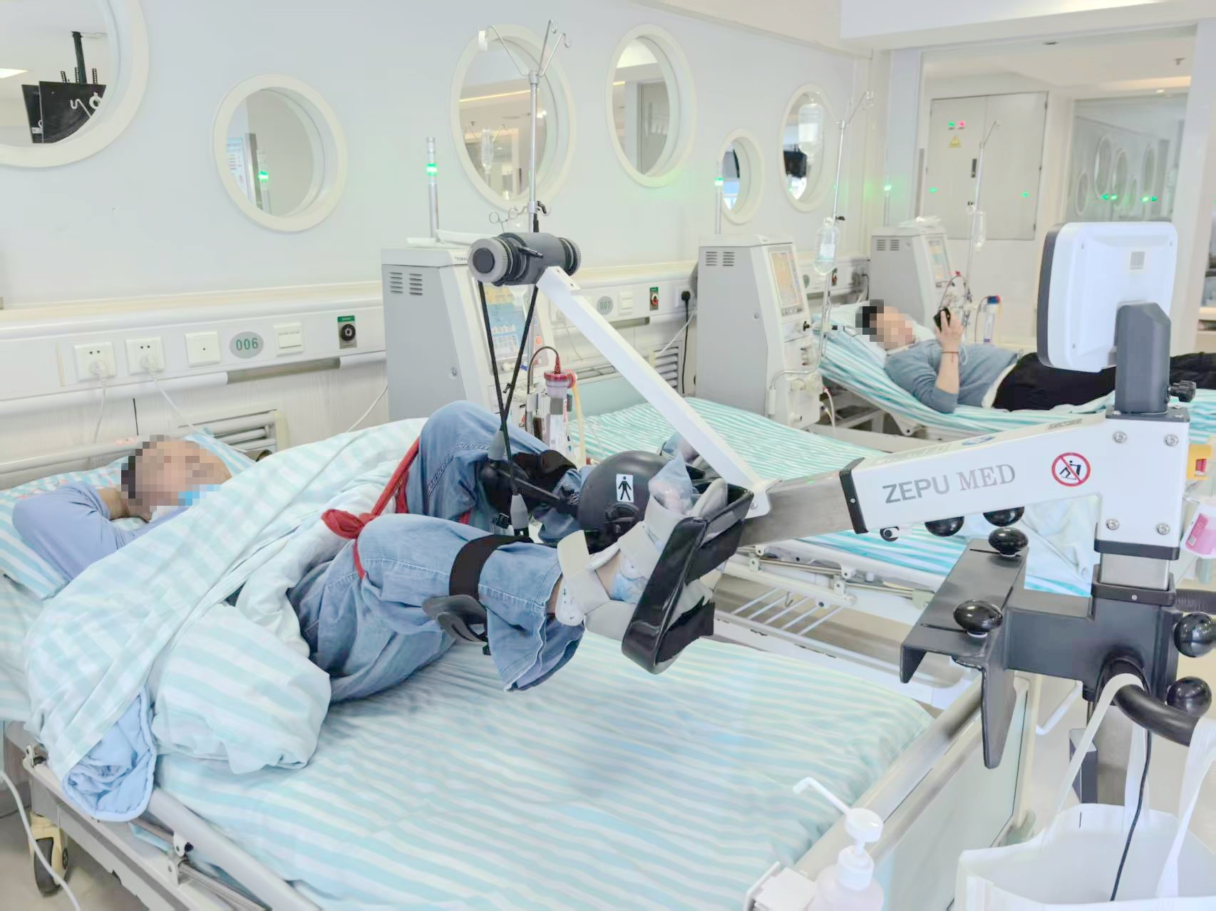 首次开展“透析中康复”时,宋金辉亲自到场指导动作细节,护士宗莹莹根据陆先生的身体情况调整脚踏车角度,并协助固定身体。护士浦春艳则全程观察其生命体征与状态。让陆先生意外的是,训练动作轻缓且与透析节奏高度适配,过程中没有任何不适感,结束后反而明显感觉腰部发暖、腿部轻快了不少。