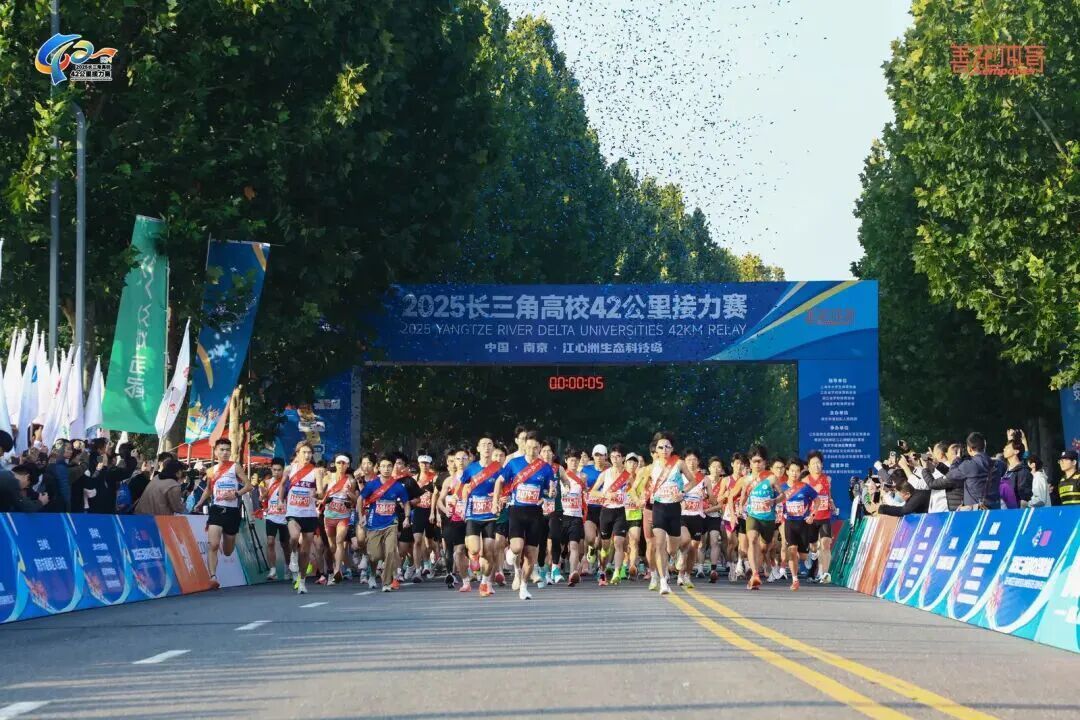 11月2日,2025长三角高校42公里接力赛在南京建邺江心洲鸣枪起跑,来自长三角地区三省一市的高校代表队齐聚于此,用活力共同点燃这场属于青春的奔跑盛会。