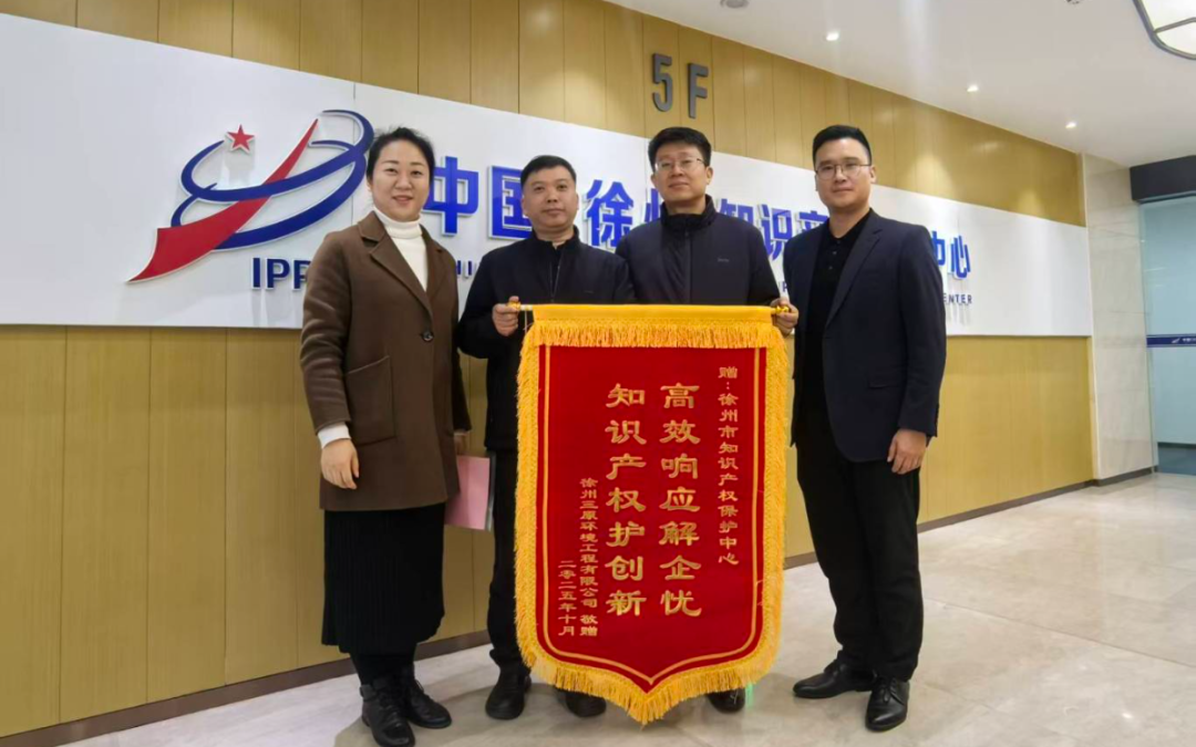 “我们深刻感受到了中心‘为企业创新发展保驾护航’的服务理念,进一步增强了我们对知识产权保护的信心,也激励我们在技术研发和自主创新的道路上不断前行。” 10月30日,徐州三原环境工程有限公司负责人向徐州市知识产权保护中心赠送锦旗和感谢信,对中心专业、精准、高效的服务表达感谢。
